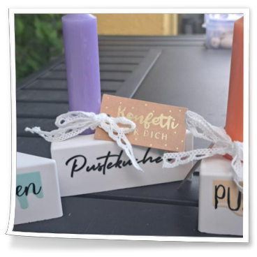 Bei mir gibt es nicht nur die Sachen die im Regal stehen, sondern ich personalisiere auch gerne Sachen.
